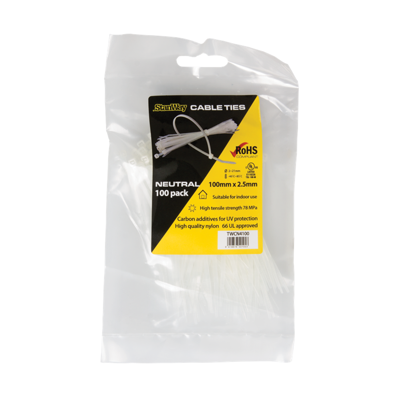 Stanway Cable Tie Natural Non UV 100mm x 2.5mm 100 pack